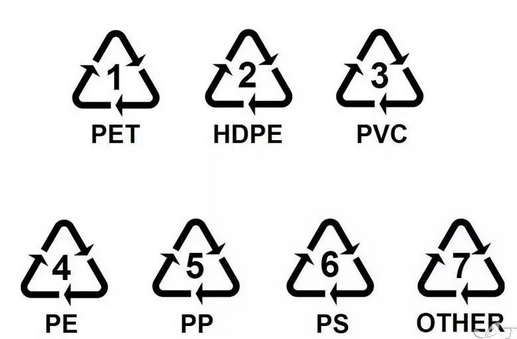如果你将平时用的各种塑料容器翻转过来看看,会发现绝大多数的底部或者靠近底部的侧面,都有下面这样的图标。